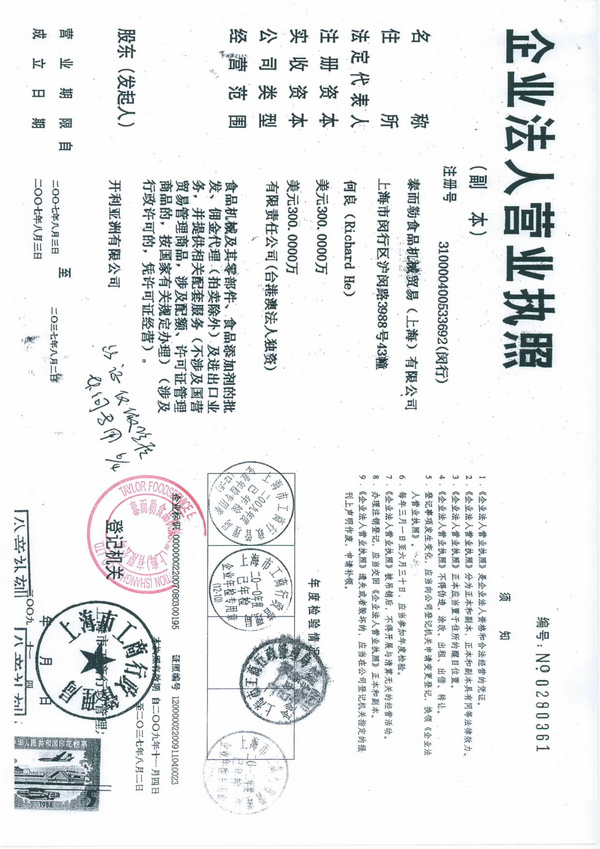 公司名称: 泰而勒食品机械贸易(上海)有限公司