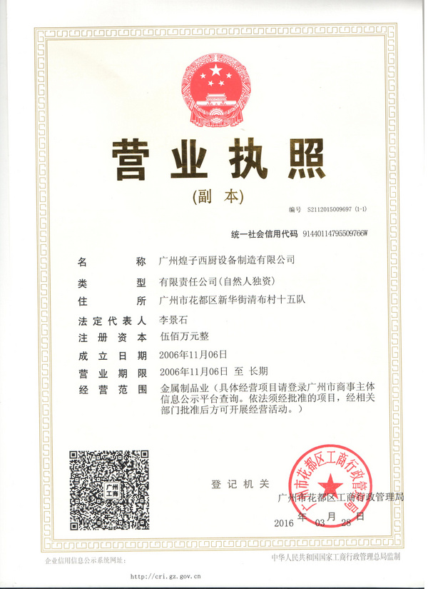 煌子西厨设备制造有限公司,集研发、生产、销售服务为一体的商用西式餐饮设备供应商,产品涵盖高端厨房工程设备、小吃设备、制冷设备,目前公司拥有3个自主权商标:“西厨王子”、“冰美淇乐”、“斯科立”。