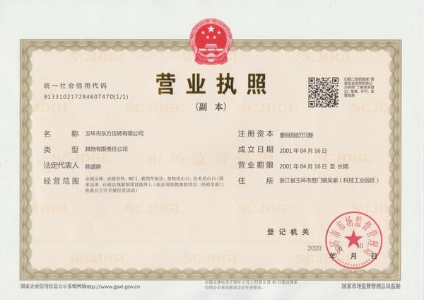 公司名称: 玉环市东方压铸有限公司