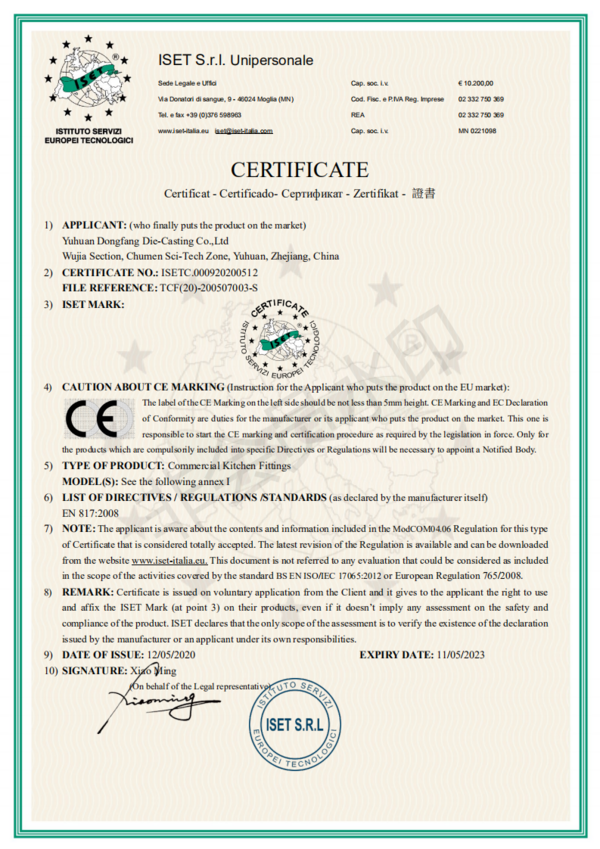 玉环市东方压铸有限公司是一家专注于制造和出口水龙头,锌合金配件及其他相关铜件的工厂。公司业务最早可追溯1993年,近30年的发展,现拥有150名工人,1.6万方生产面积。目前,我司是当地锌合金产品加工工艺最全的工厂,从锌合金压铸,机加,抛光和电镀,全部可自行内部解决。15年前,公司又开发了商用厨卫方面产品,大量出口欧美等国家,广受好评。