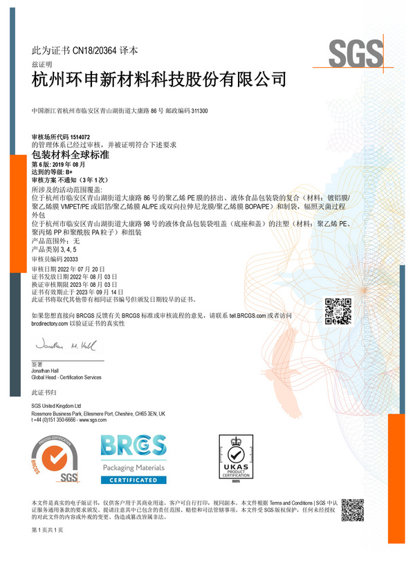 环申新材成立于2006年,是一家专业从事中大型储运软包装研发、生产及销售的国家级高新技术企业。可生产1L至1400L不同应用功能和阻隔级别的软包装,其中无菌袋、盒中袋、液体吨袋、集装袋内袋等流体和固体储运软包装产品,被广泛应用于食品及非食品行业原料的储存和运输。