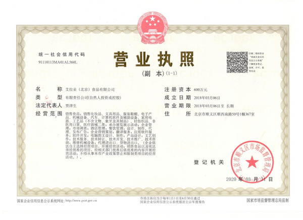 公司名称: 艾拉朵(北京)食品有限公司