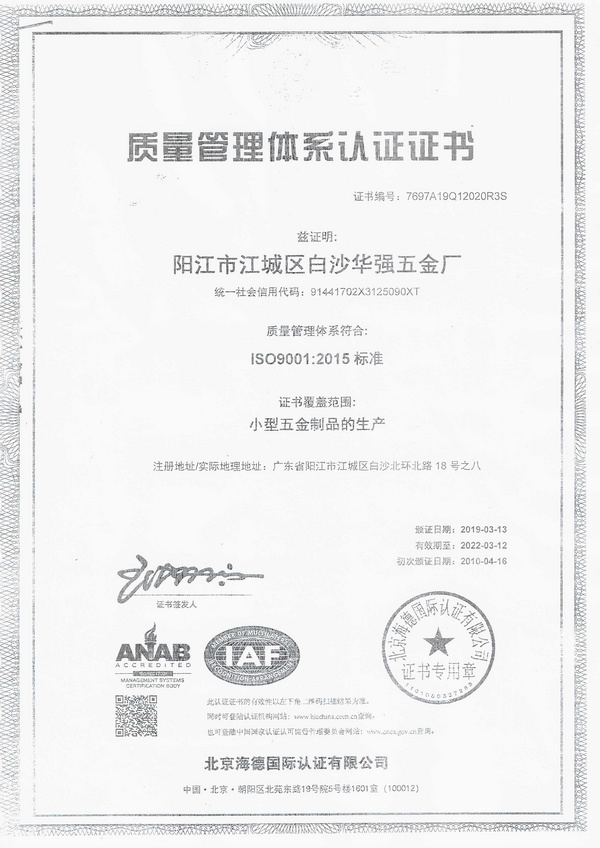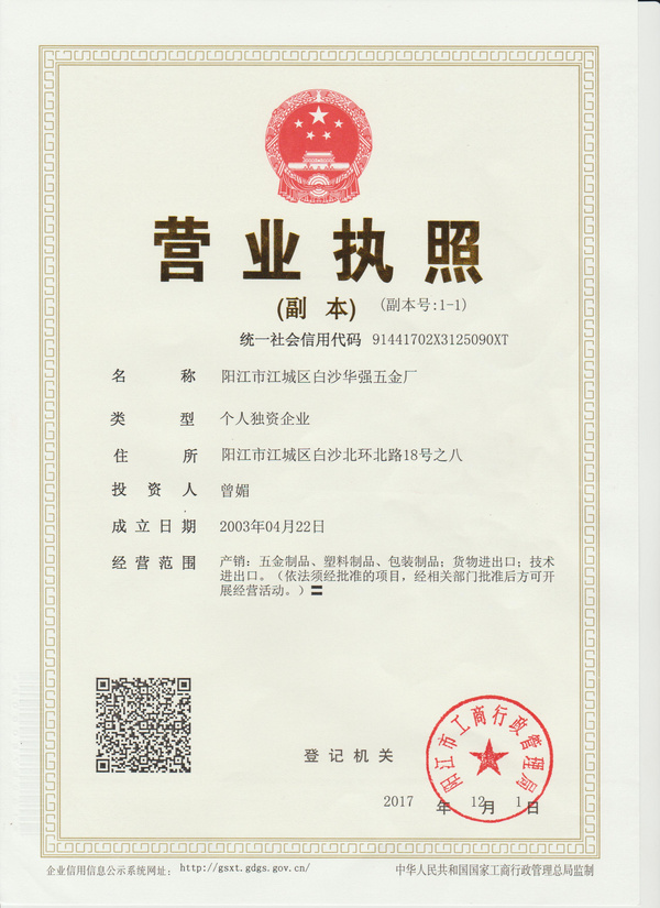 公司名称: 阳江市江城区白沙华强五金厂