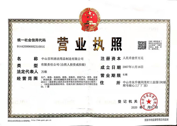 公司名称: 中山百科清洁用品制造有限公司