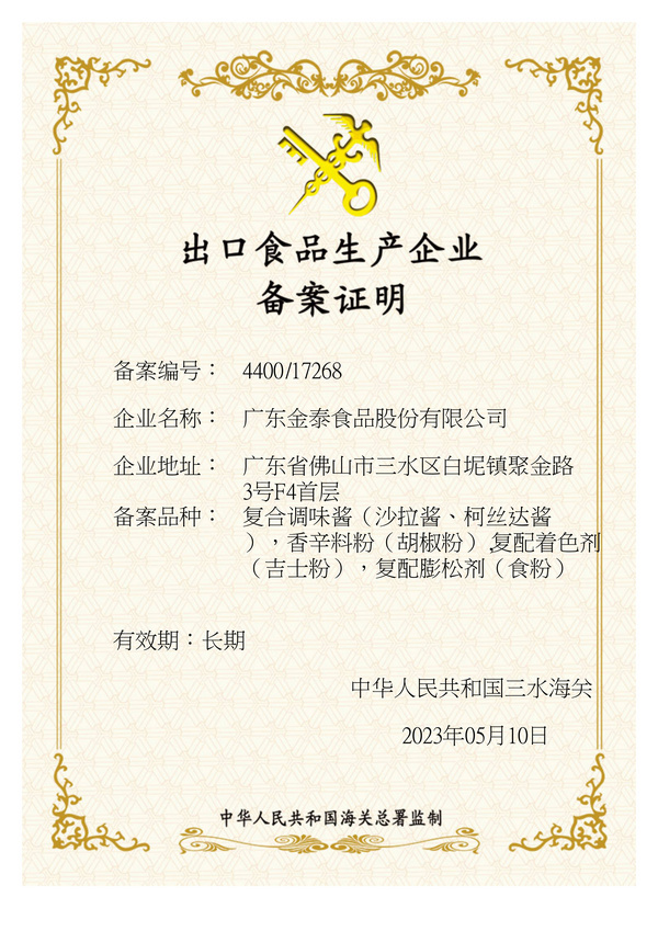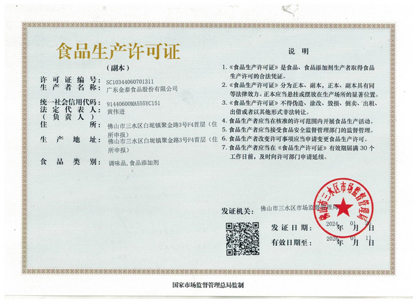 广东金泰食品股份有限公司是一家大型食品制造企业。公司品牌在行业深耕三十余年,深受广大经销商和消费者喜爱。主营:酱料(烘焙、中西餐业)、调味品、食材、罐头食品、食品添加剂等多系列产品,其优质产品有:康盛牌沙拉酱、乳酪酱、柯丝达酱、番茄酱等,金泰牌(皇金金冠)沙拉酱、沙司、黑椒汁、披萨酱、甜辣酱等,斧头牌食品用洗涤剂、金泰狮牌吉士粉、泡打粉、金泰牌(金牌厨师)红腰豆、玉米粒、金泰牌黑胡椒碎、粉、粒、五香粉、蒜香粉、沙姜粉、咖喱粉,金福牌香辛料,丽歌图标意大利粉,鱼露,味椒盐,金泰牌嫩肉粉、松肉粉,安多夫牌松肉粉等畅销国内外市场,一直秉承“产品第一,客户至上”服务宗旨。打造安全放心食品,致力于国人健康安全为己任,立足科学发展,携手合作,共创共赢。