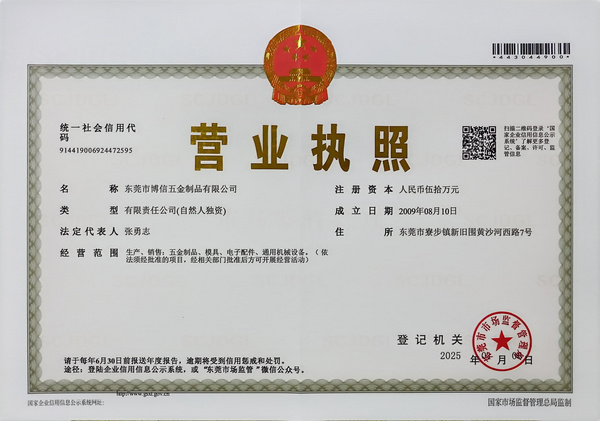 东莞市博信五金有限公司成立于2003年,公司创始人从十多岁入行,专心学技术、钻研加工工艺;公司多年来致力于为客户提供非标配件定制一站式的解决方案,从节约材料成本、为客户提供多重工艺选择、工艺优化上着手,专为客户解决:加工工艺复杂、成本高、涉及工序多等痛点。目前已专注机加工超20年。长期稳定员工达50人。 我司总占地面积超6500平方米,配备各类生产机器及设备十余种,设备总数量达80台; 入行二十余载,我司已累积多行业客户资源,部分客户甚至是行业龙头、上市公司;如建筑五金配件、家电五金配件、新能源配件、机器人配件、医疗器械配件、汽车&摩托车配件等。多数产品都是对接国外客户,具有出口资质。多年来,我司不断进行技术升级 一直致力于为客户提供一条龙服务,希望为客户提供专业且省心省力的服务以及优质的产品。