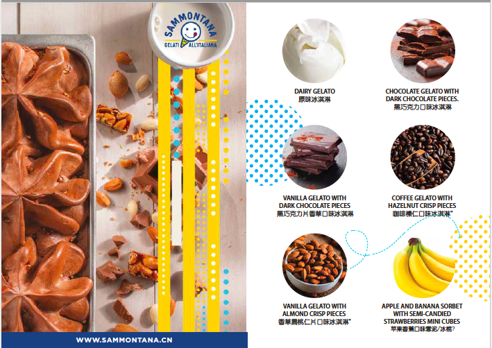 具有73年历史的意大利冰淇淋品牌sammontana,传承意大利美食文化,专注gelato(意式冰淇淋)的研发和生产。分布在意大利北部,中部,南部的4家工厂,使得sammontana成为意大利gelato的领军企业。占据意大利gelato 市场的绝对份额。在欧洲冰淇淋行业中排名前列。